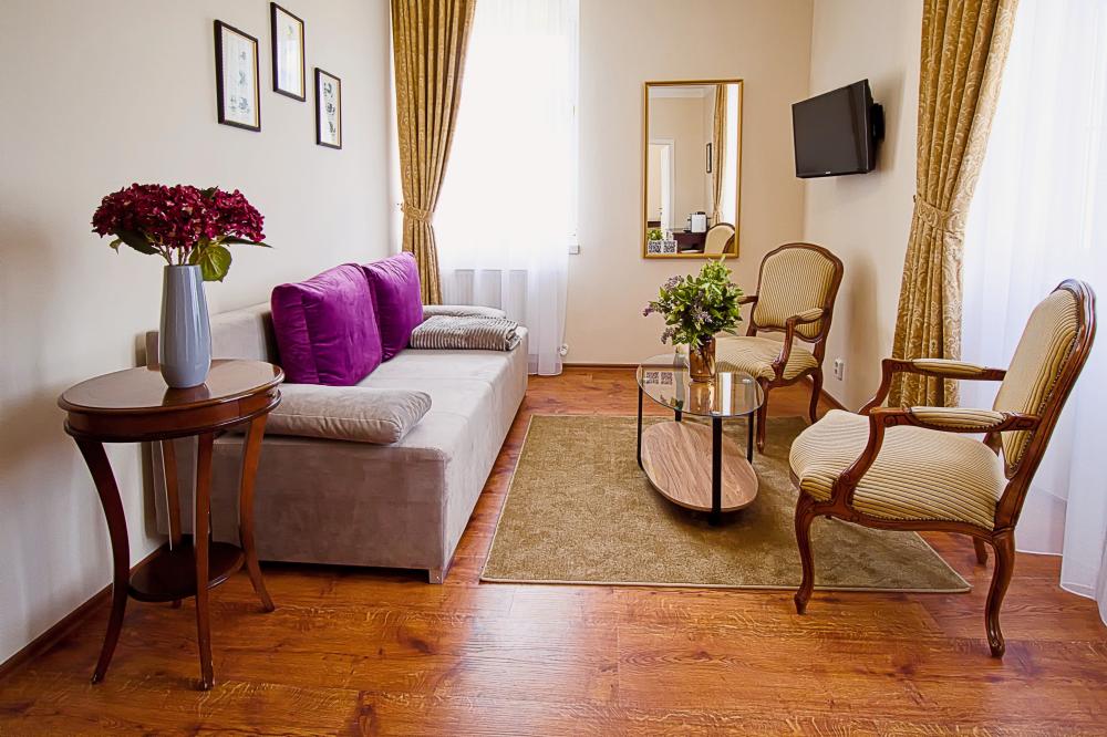Pokoj v apartmánovém domě Villa Patriot v Mariánských Lázních je obývací pokoj s rozkládací sedačkou, jedna ložnice s možností přidání dětské postýlky.