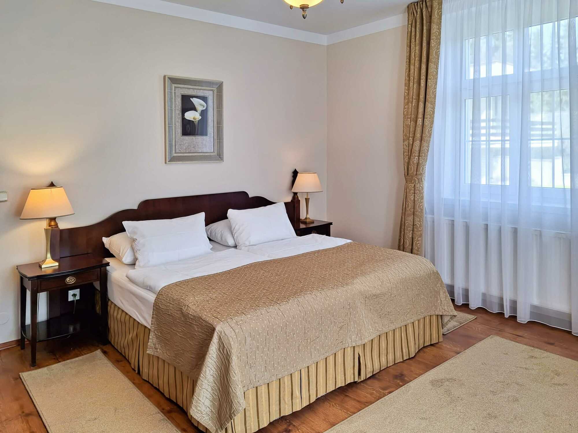 Pokoj č.1 v apartmánovém domě Villa Patriot v Mariánských Lázních je velký byt, ve kterém je obývací pokoj, dvě ložnice s možností přidání dětské postýlky a plně vybavená kuchyň. Součástí bytu je koupelna se sprchou, toaletními potřebami a toaletou. V pokoji je televizor a wifi zdarma. Tento apartmán je ideální pro pobyt až čtyř osob. Přístup do pokoje je po schodech. Úklid je na vyžádání za příplatek. Automatický check-in zaručí naprosté soukromí.Cena pokoje je bez snídaně, s možností dokoupení bohatých snídaní ve VILLA PATRIOT Boutique Hotelu za cenu 400Kč os/den v dojezdové vzdálenosti 10min od Apartmánu. Nebo možnost snídaně do ledničky ve společné kuchyni za cenu 300Kč os/den - nutné objednat 1 den předem. Pro objednání snídaní volat +420 725 848 582