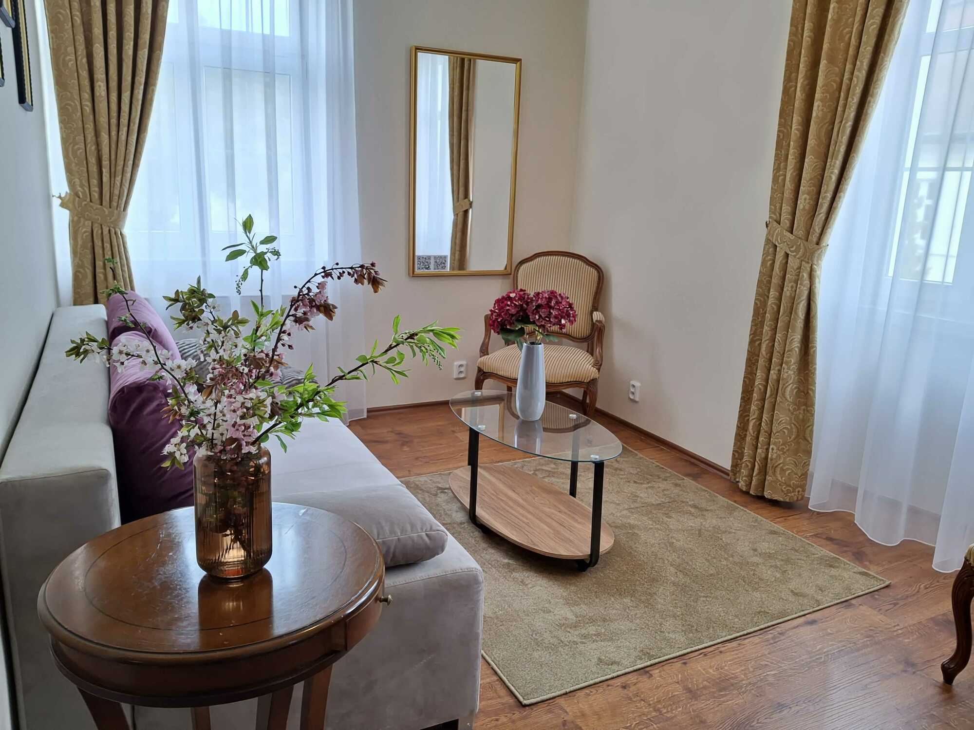 Pokoj v apartmánovém domě Villa Patriot v Mariánských Lázních je obývací pokoj s rozkládací sedačkou, jedna ložnice s možností přidání dětské postýlky.
